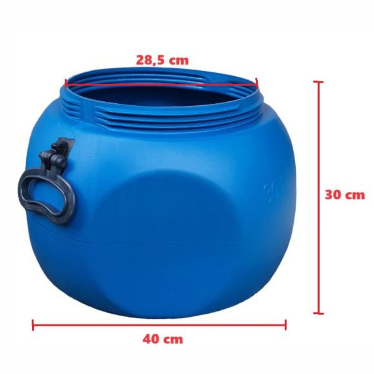 Fabricada em Polietileno de Alta Densidade, possui perfil cilíndrico com capacidade de 30 litros (água), com tampa plástica (Não tem vedação)